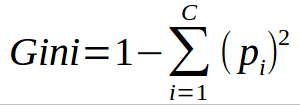 - 오분류의 척도로 엔트로피와 유사하게 작동하지만 Gini 계산법이 더 빠름.